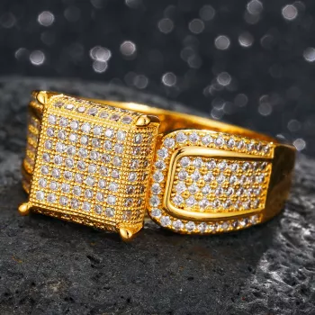 Iced Out CZ Diamond Hip Hop Ring – Gold Bling Band for Men & Women