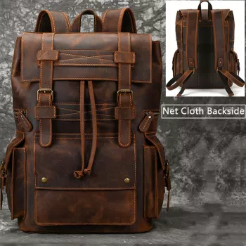 Large Genuine Leather Laptop Backpack – 17" Vintage Travel Daypack